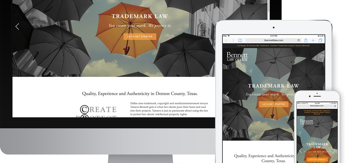 Established trademark and music attorney Tamera H. Bennett is a wife, mom, lawyer, mediator, blogger, podcaster, and legal writer. She needed a new website to heighten awareness of her media content, as well as appeal to media clients. We designed a responsive, easy-to-update site with heavy focus on blog content and social media.